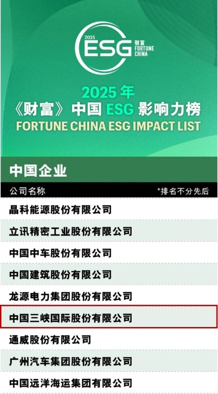 三峽國際榮登2025《財(cái)富》中國ESG影響力榜