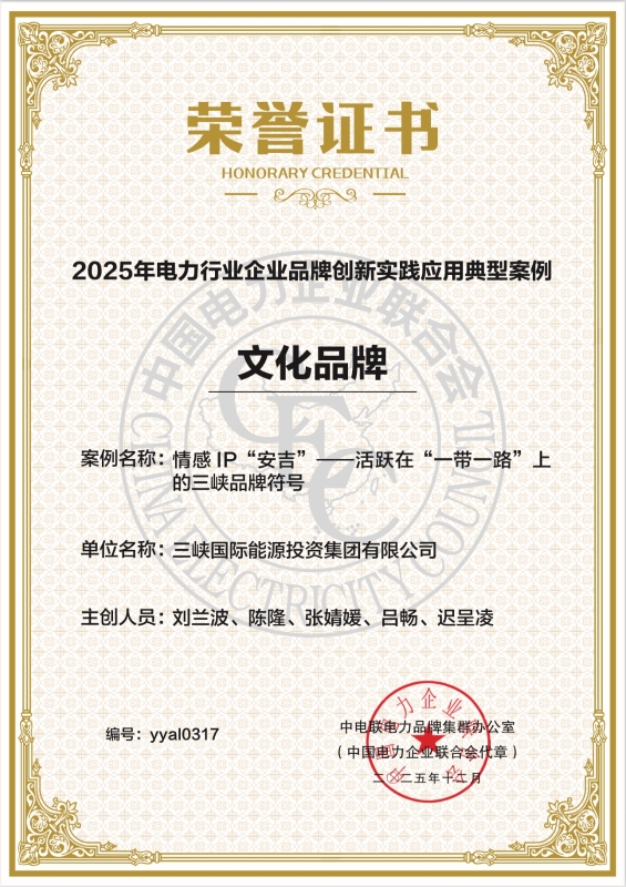 12月19日,在中國電力企業聯合會組織的“2025年電力行業企業品牌創新實踐應用典型案例”征選活動中,三峽國際報送的《情感IP“安吉”——活躍在“一帶一路”上的三峽品牌符號》案例,從眾多參選作品中脫穎而出,榮獲“文化品牌”類典型案例。該案例生動展示了公司如何創造性打造“安吉”(Engr)這一擬人化品牌IP,通過系列線上線下策劃,將其融入海外業務拓展、環保理念倡導、社會責任履行及文化交流活動中,有效提升了品牌溫度與親和力,成為連接中外員工與公眾的情感紐帶和文化橋梁。