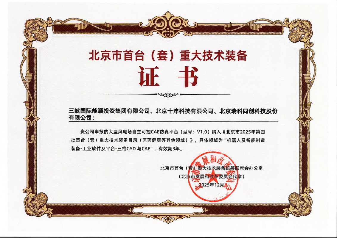 此次獲批的北京市首臺(tái)(套)重大技術(shù)裝備由公司創(chuàng)新業(yè)務(wù)發(fā)展與研究中心負(fù)責(zé)牽頭研發(fā),參加單位包括北京十灃科技有限公司和北京瑞科同創(chuàng)科技股份有限公司。該平臺(tái)已應(yīng)用在三峽亞非公司約旦沙巴克風(fēng)電場(chǎng),為海外新能源項(xiàng)目提供高精度仿真與評(píng)估能力,是我國(guó)風(fēng)電領(lǐng)域自主研發(fā)與裝備國(guó)際化應(yīng)用的重要實(shí)踐。