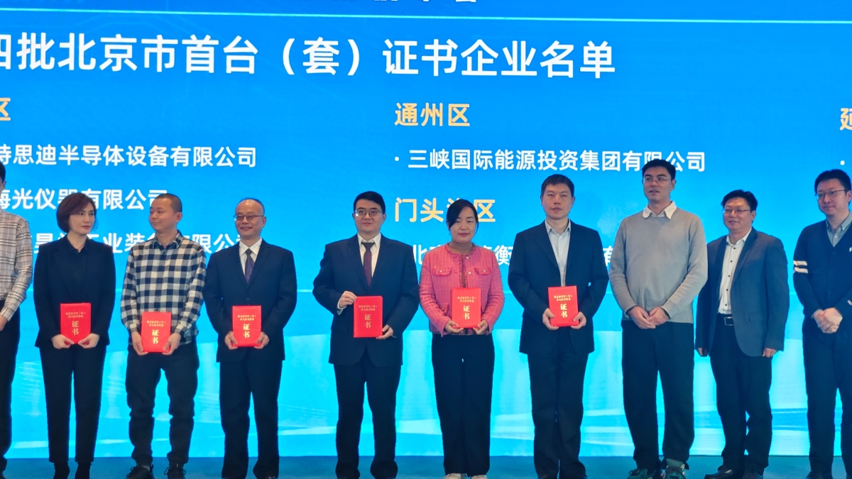 北京市首臺(tái)(套)重大技術(shù)裝備證書(shū)