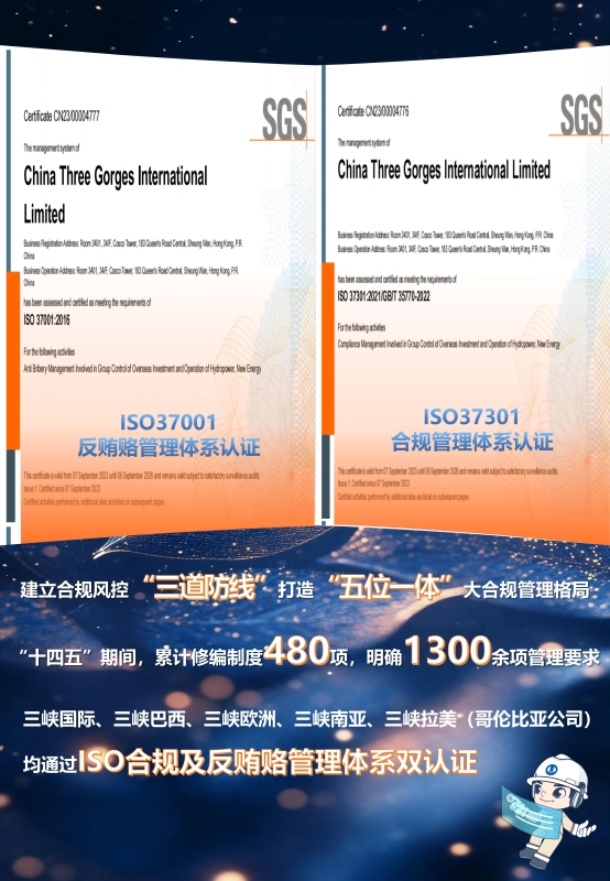 “十四五”期間,三峽國際按照“治理現代化、股權多元化、資產證券化、經營屬地化”的管理提升目標,堅守“安全、合規、信用、廉潔”四個底線,明確了“戰略集中、屬地運營、市場聚焦、國別深耕”的總策略,不斷錘煉戰略管控、投資并購、籌資融資、整合運維、風險合規、公司治理六大核心能力,治理水平持續加強,為建設世界一流跨國清潔能源公司積蓄力量。